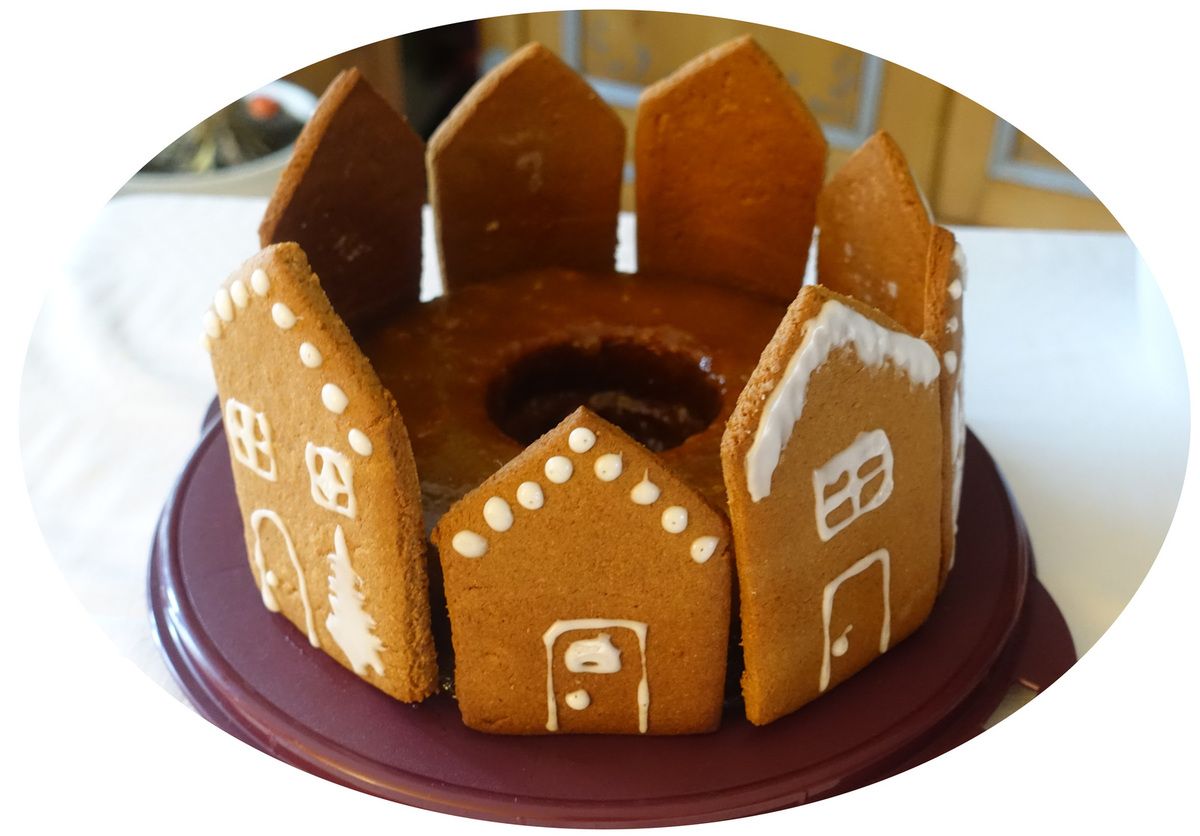 Voici un autre des desserts de Noël dernier, cette fois pour le 25 à midi (oui, nous avons effectivement suffisamment mangé pendant la période des fêtes ^^). J'ai utilisé une recette de pain d'épices très gourmand (recouvert de confiture...) ainsi que la recette de pain d'épice que j'avais utilisé pour faire mon gâteau étoile au pain d'épices, ganache chocolat & orange. J'ai juste poser les maisons en pain d'épices contre le pain d'épices moelleux juste avant de servir :)