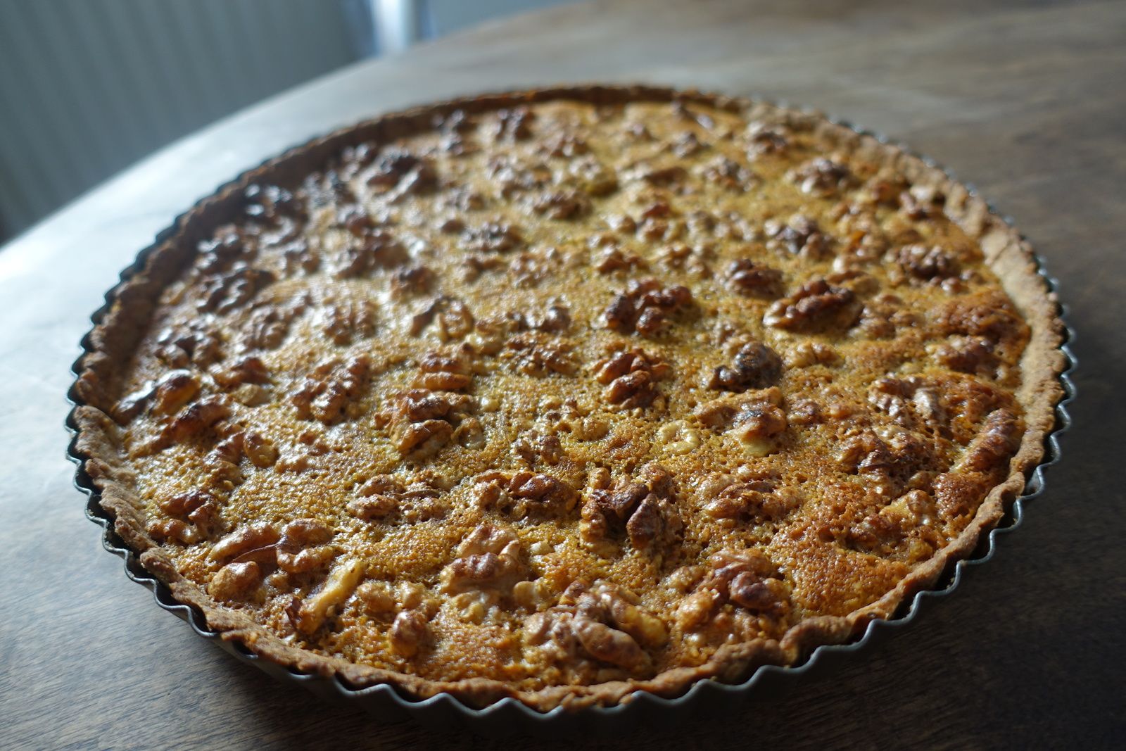 Une tarte très gourmande, servie lors d'un brunch entre amis. Le sucre est dosé sans excès, les noix apportent du croquant et le sirop d'érable permet d'avoir un goût presque caramélisé. De plus, c'est une recette qui est assez vite réalisée, ce qui ne gâche rien ^^